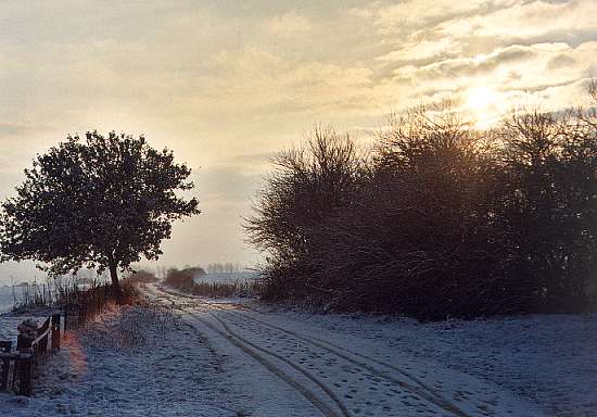 Blick Klockow. Einfahrt in Bröllin. Von hinten von Züsedom kommend querte die