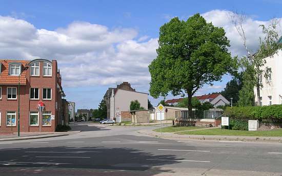 Von der Feldstraße bog die Schmalspurbahn mittels Rechtskurve hier heran. Heute